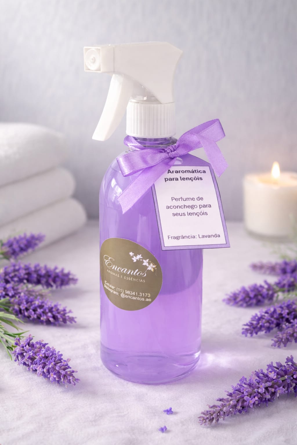 Produzida artesanalmente, nossa água aromatizada de lençóis com fragrância de lavanda é perfeita para quem busca bem-estar no dia a dia.